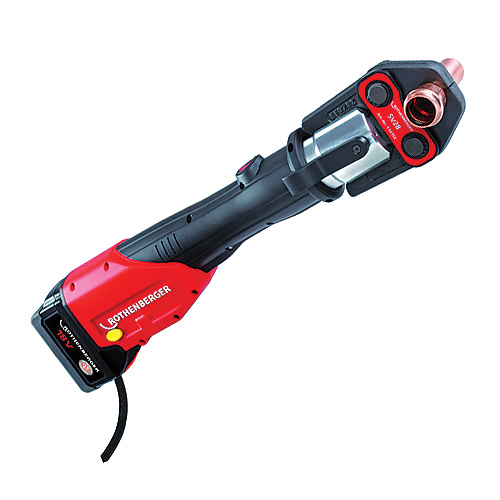Electro-hydraulic Press Machine for mains operation 230 V, for pressing of HERZ-PIPEFIX. The press jaw can be turned through 270° depending on the application. Weight: 3.8 kg without press jaws.