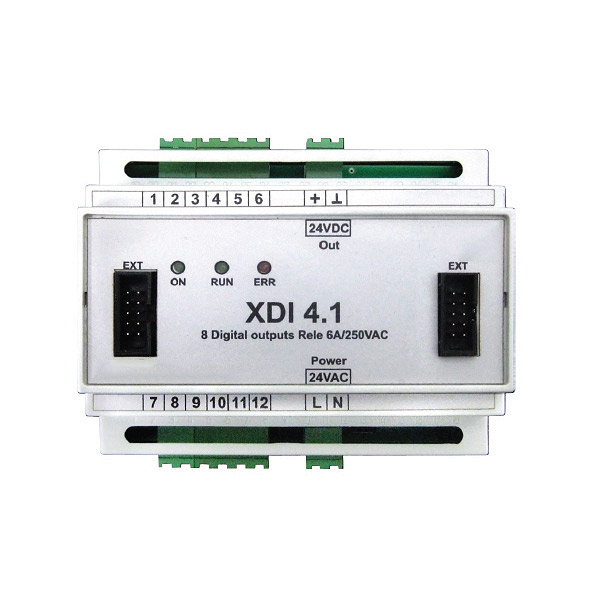 for HERZ-Microprocessor Controller XF-5000. The module has 8 digital relay type outputs. Designed to control the work of electric drives 220 V/AC or 24 V/AC directly or through a relay/contactor in automated systems, air conditioning, heating, cooling and the process industry. Number of outputs: 8 Output type: Relay Only one module can be connected to the microprocessor controller.