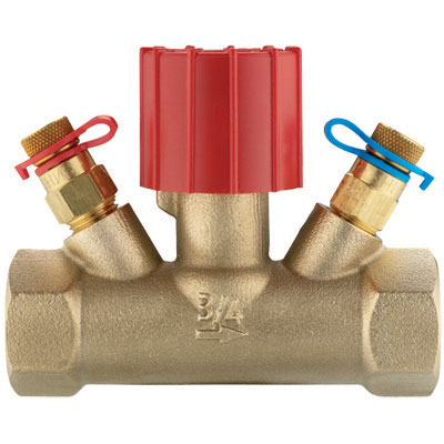 Dezincification resistant brass body, model for hydraulic balancing of cooling ceiling systems and fan coils. Two test points 1 0284 mounted next to handwheel, presetting by limitation of valve lift, pipe connection on both sides with female thread.