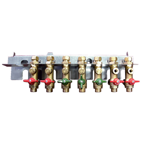 Supplied as mounting plate with bores, completed by ball valves for heating, cold- and hot water, connection possible from the wall, or from the bottom, the connection to the substation is done by inserting and screwing connections at the pipe side, fixing parts included.