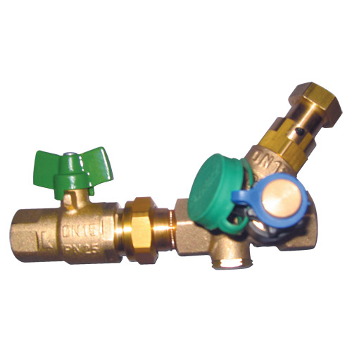 Thermostatic flow control valve for limiting water flow temperature with circulating pump, in the form of a proportional controller. Inclined model, dezincification resistant brass body and water bearing parts. Cone, valve spindles, springs and guide parts stainless steel. Factory setting at 52 °C, secured against excess temperatures up to 90 °C. For rising temperatures the valve cone is closed via the thermostatic element. For decreasing temperatures, the valve cone is opened via an opening spring. Complete with ball valve. Socket thread according to to ISO 7/1 (Rp).