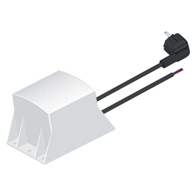Transformer 230 V specially made for modular connecting boxes 230 V~ or 110 V~ Output: max. 24 V~. Operating temperature: 0 °C to 50 °C Output Power: 60 VA (18 actuators) Protection class: IP 30.